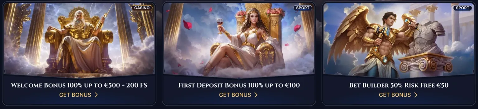 - Μπόνους Αθλητικών Στοιχημάτων: Οι νέοι παίκτες μπορούν να απολαύσουν ένα 100% Μπόνους Πρώτης Κατάθεσης για στοιχήματα, που σημαίνει ότι μπορείτε να διπλασιάσετε την πρώτη σας κατάθεση έως και 200 €. Για να επιλεχθείτε, πρέπει απλώς να καταθέσετε τουλάχιστον 20 €, και το καλύτερο είναι ότι η απαίτηση στοιχηματισμού είναι x1. Αυτό είναι αρκετά χαμηλό, διευκολύνοντας την απόσυρση των κερδών σας.