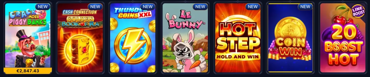 - Joker Cashpot: Αυτός ο ζωντανός και διασκεδαστικός κουλοχέρης διαθέτει κλασικά σύμβολα τζόκερ, δυναμικές κινούμενες εικόνες και συναρπαστικά μπόνους που κρατούν τους παίκτες σε εγρήγορση. Με τα χρωματιστά γραφικά του και τη φιλική προς τους χρήστες μηχανική του, απευθύνεται τόσο σε νέους όσο και σε έμπειρους παίκτες.